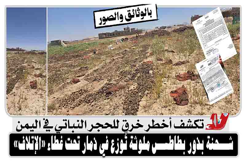 «لا» تكشف أخطر خرق للحجر النباتي في اليمن.. شحنة بذور بطاطس ملوثة تُوزع في ذمار تحت غطاء «الإتلاف»