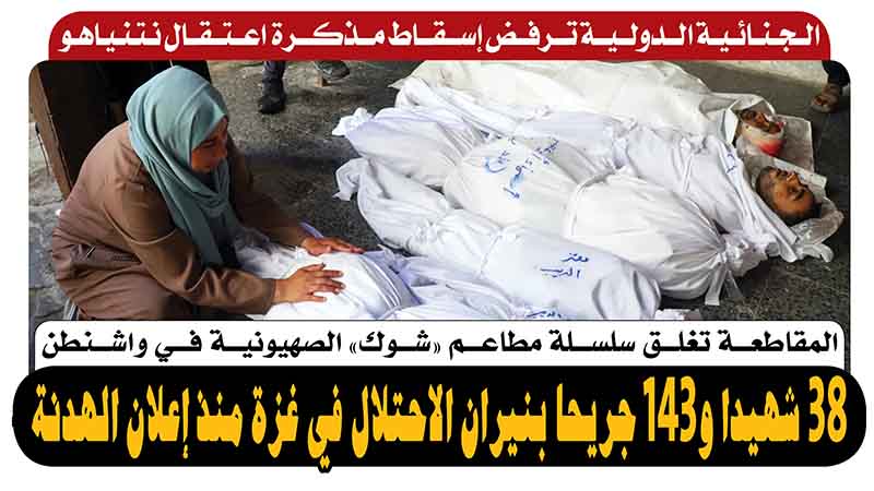 الـمــزيـدانقلب العدو الإسرائيلي، اليوم السبت، على اتفاق وقف إطلاق النار في قطاع غزة، وأعلن عدم فتح معبر رفح خلافاً لما نصّت عليه الاتفاقية التي وقعت عليها الولايات المتحدة الأمريكية والوسطاء. وأعلن مكتب مجر ...