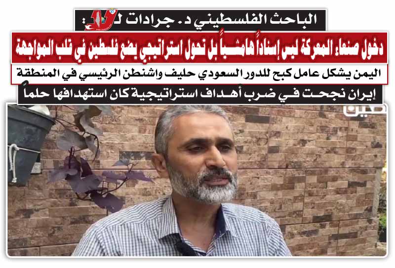 الباحث الفلسطيني د. جرادات لـ«لا»: دخول صنعاء المعركة ليس إسناداً هامشياً بل تحول استراتيجي يضع فلسطين في قلب المواجهة