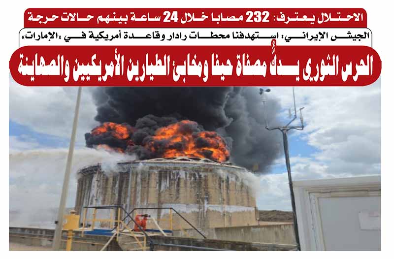 أعلن الجيش الإيراني، أنه استهدف منذ فجر اليوم الثلاثاء، مراكز استراتيجية ومهمة للكيان الصهيوني في مجالات الاتصالات والمخابرات والصناعة، بطائرات مسيّرة، وذلك ردًا على جرائم الكيان الصهيوني وأمريكا باست ...