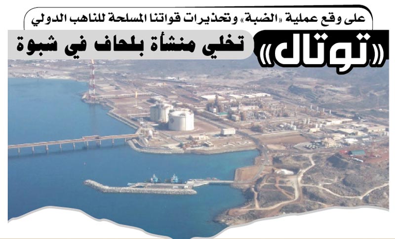 على وقع عملية «الضبة» وتحذيرات قواتنا المسلحة للناهب الدولي.. «توتال» تخلي منشأة بلحاف في شبوة