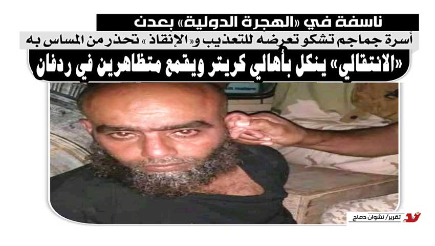 أسرة جماجم تشكو تعرضه للتعذيب والإنقاذ تحذر من المساس به... «الانتقالي» ينكل بأهالي كريتر ويقمع متظاهرين في ردفان