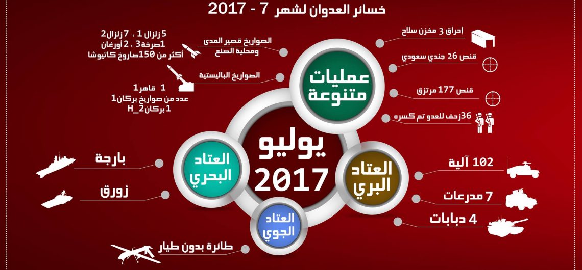 الـمــزيـدمنيت قوى تحالف العدوان السعودي الامريكي ومرتزقتهم بخسائر بشرية ومادية فادحة خلال شهر يوليو المنصرم ح. .