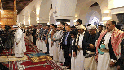 رئيس المجلس السياسي الأعلى يؤدي صلاة عيد الفطر مع جموع المصلين بالجامع الكبير بصنعاء