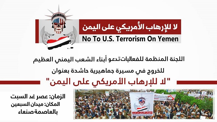 الـمــزيـدأعلنت اللجنة المنظمة تغيير مكان المسيرة الجماهيرية الحاشدة " لا للإرهاب الأمريكي على اليمن" عصر غد ا. .