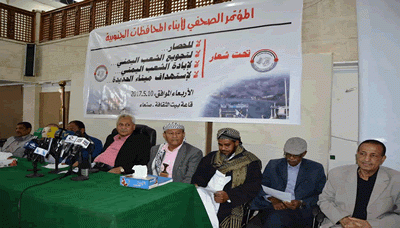 أعلن في مؤتمر صحفي لأبناء المحافظات الجنوبية اليوم في بيت الثقافة بصنعاء عن تنظيم مسيرة شعبية مدنية . .