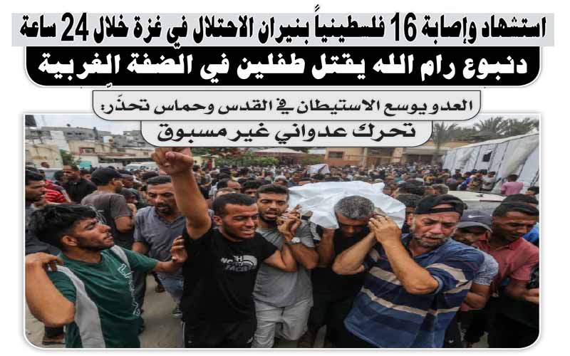 استشهاد وإصابة 16 فلسطينياً بنيران الاحتلال في غزة خلال 24 ساعة.. دنبوع رام الله يقتل طفلين في الضفة الغربية