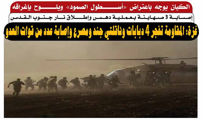 الكيان يوجه باعتراض «أسطول الصمود ويلوح بإغراقه.. غزة: المقاومة تفجر 4 دبابات وناقلتي جند ومصرع وإصابة عدد من قوات العدوم