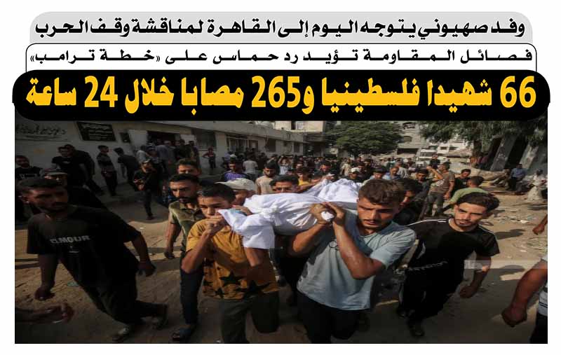 فصائل المقاومة تؤيد رد حماس على «خطة ترامب».. 66 شهيدا فلسطينيا و265 مصابا خلال 24 ساعة
