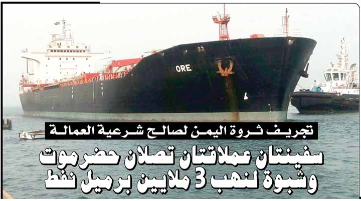 تجريف ثروة اليمن لصالح شرعية العمالة.. سفينتان عملاقتان تصلان حضرموت وشبوة لنهب 3 ملايين برميل نفط