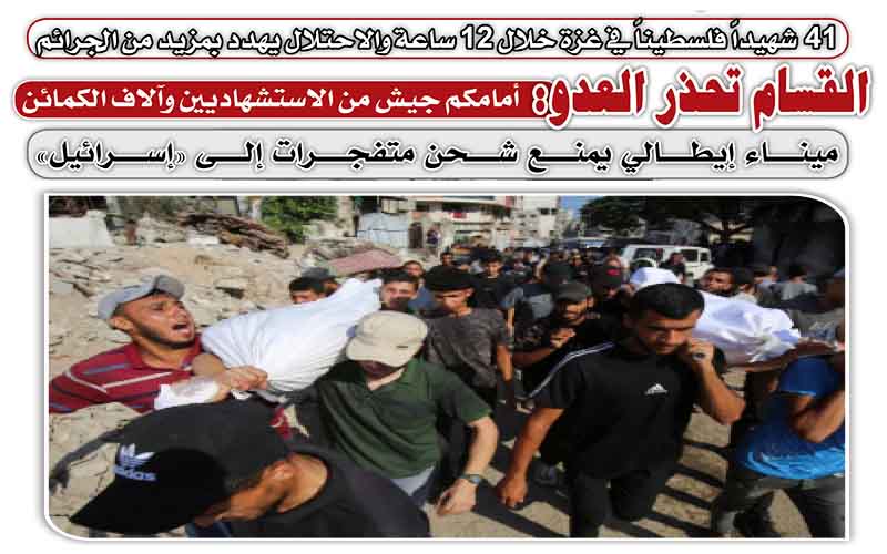 بن غفير يدعو لاعتقال عباس .. 37 شهيدا في غزة وتظاهرات وإضراب في 60 مدينة إيطالية رفضا للإبادة