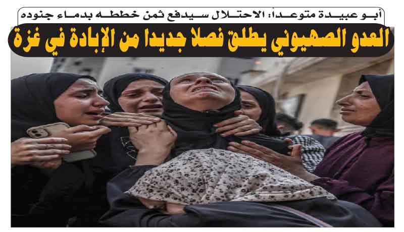 أبو عبيدة متوعداً: الاحتلال سيدفع ثمن خططه بدماء جنوده.. العدو الصهيوني يطلق فصلا جديدا من الإبادة في غزة