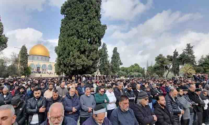 أدى عشرات آلاف الفلسطينيين، اليوم، صلاة الجمعة، في المسجد الأقصى المبارك وباحاته، رغم القيود والتشدي. .