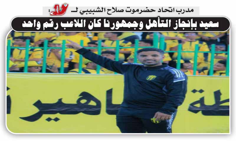 مدرب اتحاد حضرموت صلاح الشبيبي لـ«لا»:سعيد بإنجاز التأهل وجمهورنا كان اللاعب رقم واحد