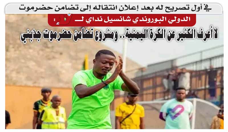 الدولي البوروندي شانسيل نداي لـ«لا»:لا أعرف الكثير عن الكرة اليمنية.. ومشروع تضامن حضرموت جذبني