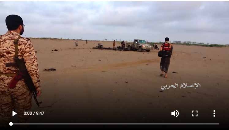 الإعلام الحربي يوزع مشاهد حطام الطائرة الاستطلاعية التي أسقطت شرق الحديدة "فيديو"