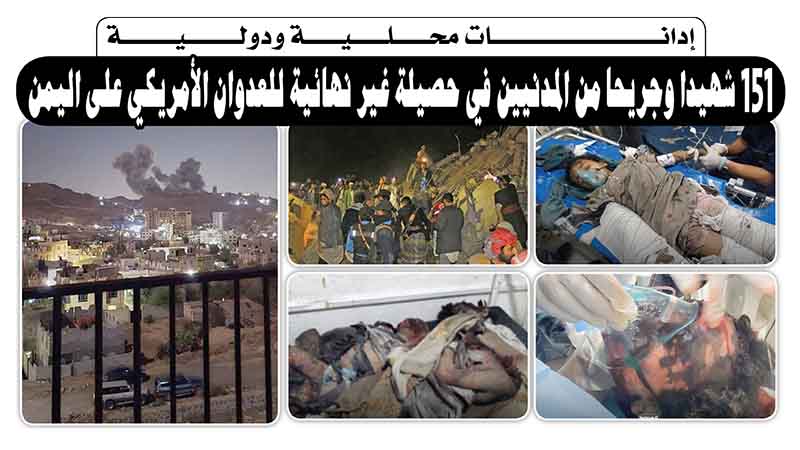 151 شهيدا وجريحا من المدنيين في حصيلة غير نهائية للعدوان الأمريكي على اليمن