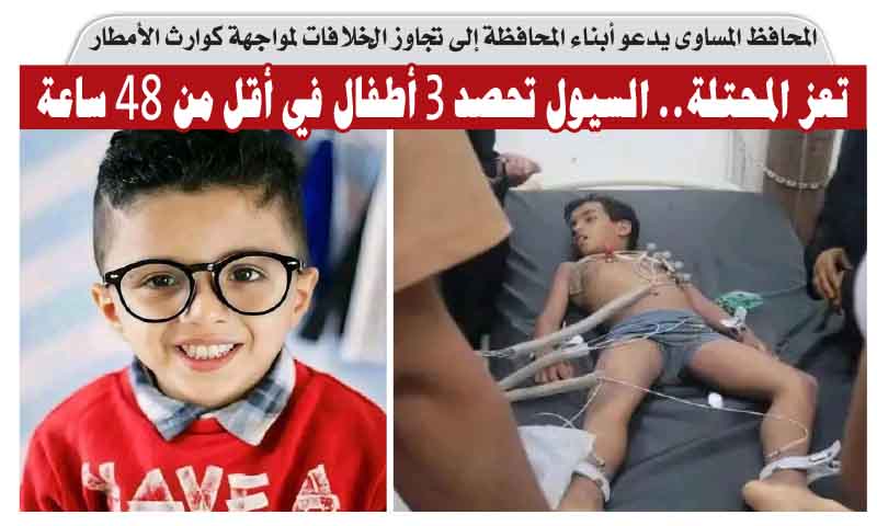 جرفت السيول في مدينة تعز المحتلة، اليوم، طفلا في الثانية عشرة من عمره، في حادثة مأساوية هي الثالثة خ. .