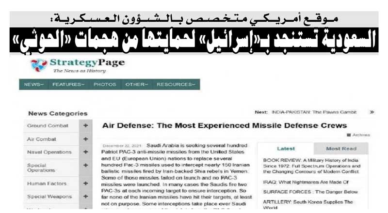 موقع أمريكي متخصص بالشؤون العسكرية:السعودية تستنجد بـ«إسرائيل» لحمايتها من هجمات «الحوثي»