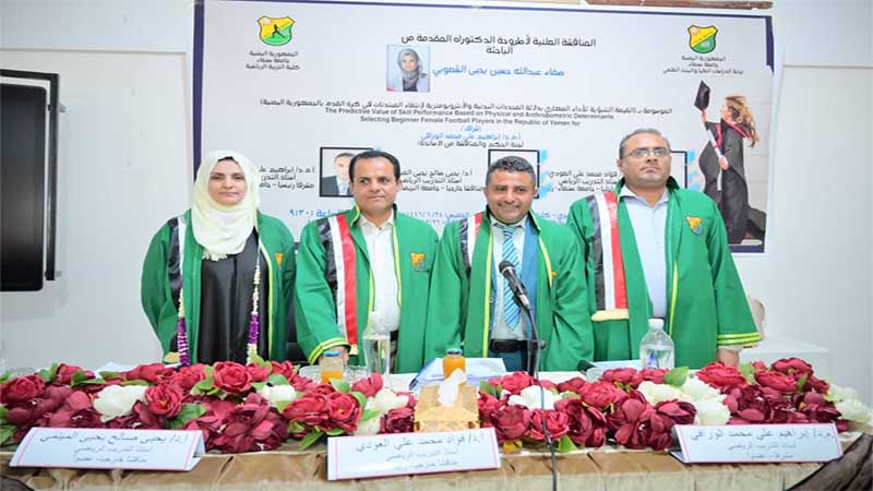 الـمــزيـدمنحت جامعة صنعاء الباحثة صفاء عبدالله حسين الشعوبي عضو هيئة التدريس في كليه التربيه الرياضية سابقا، . .
