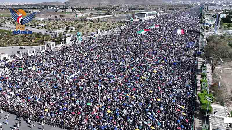 خروج مليوني بالعاصمة صنعاء نصرة لفلسطين وتأكيداً على النفير في مواجهة العدوان الأمريكي البريطاني