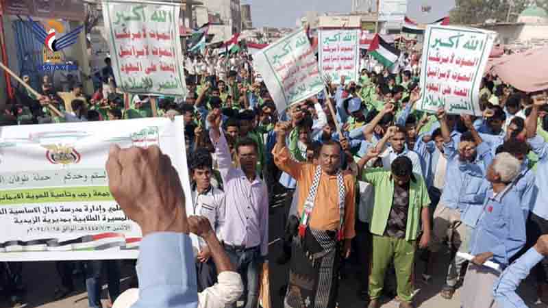 مسيرتان طلابيتان في بيت الفقية والزيدية بالحديدة تنديدا بالعدوان الامريكي البريطاني على اليمن