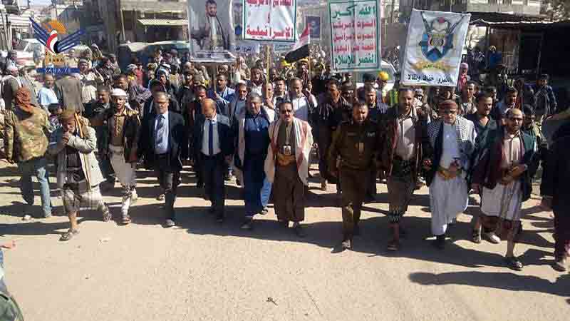 مسيرتان طلابيتان في بيت الفقية والزيدية بالحديدة تنديدا بالعدوان الامريكي البريطاني على اليمن