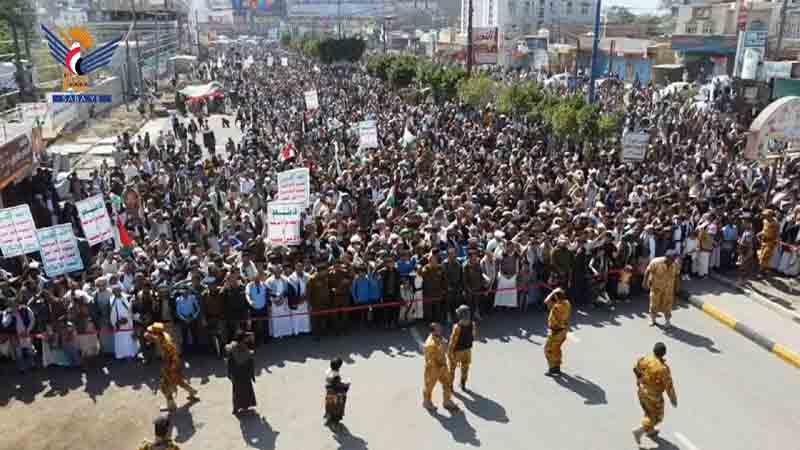 طوفان مليوني بالعاصمة صنعاء تأكيداً على نصرة غزة تحت شعار (دماء الأحرار.. على طريق الانتصار)
