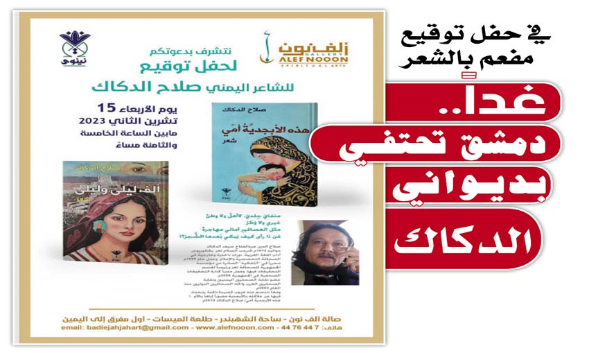 الـمــزيـديحتفي الشاعر الكبير صلاح الدكاك، رئيس تحرير صحيفة «لا»، غداً، بتوقيع ديوانيه الشعريين الأولين، في حف. .