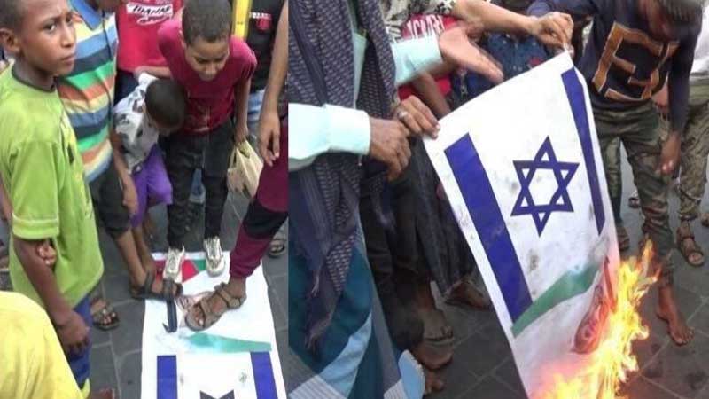 أحرق مواطنون محتجون في محافظة حضرموت المحتلة،اليوم، أعلام الكيان الصهيوني وصور رئيس دويلة الإمارات م. .
