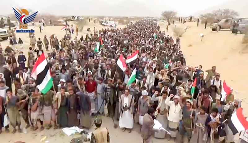مسيرة مليونية بالعاصمة صنعاء تحت شعار " ثباتا مع غزة وفلسطين.. ورفضا لصفقات الخداع والخيانة"