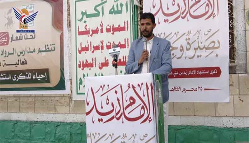 الـمــزيـدأقيمت اليوم بمحافظة صعدة فعالية ثقافية وخطابية بذكرى استشهاد الإمام زيد بن علي عليهما السلام، نظمها . .