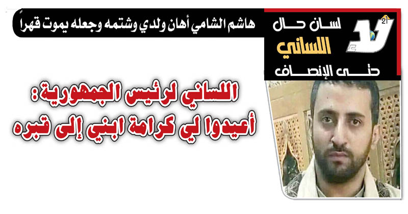 هاشم الشامي أهان ولدي وشتمه وجعله يموت قهراً .. اللساني لرئيس الجمهورية: أعيدوا لي كرامة ابني إلى قبره