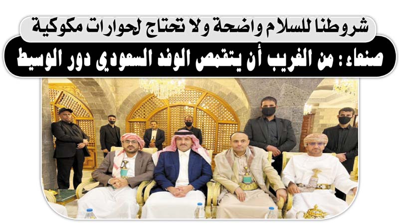 شروطنا للسلام واضحة ولا تحتاج لحوارات مكوكية.. صنعاء: من الغريب أن يتقمص الوفد السعودي دور الوسيط