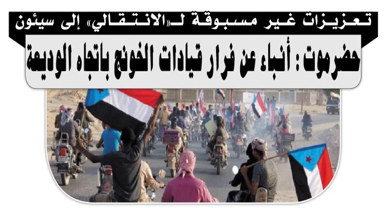 تعزيزات غير مسبوقة لـ«الانتقالي» إلى سيئون ... حضرموت: أنباء عن فرار قيادات الخونج باتجاه الوديعة