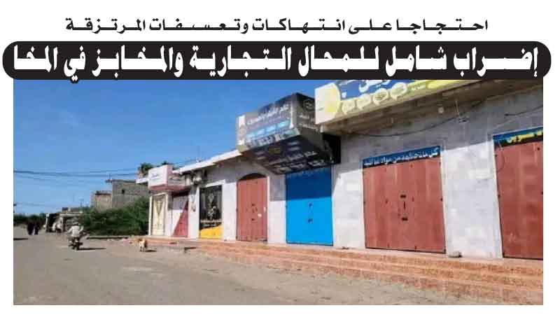 احتجاجا على انتهاكات وتعسفات المرتزقة.. إضراب شامل للمحال التجارية والمخابز في المخا