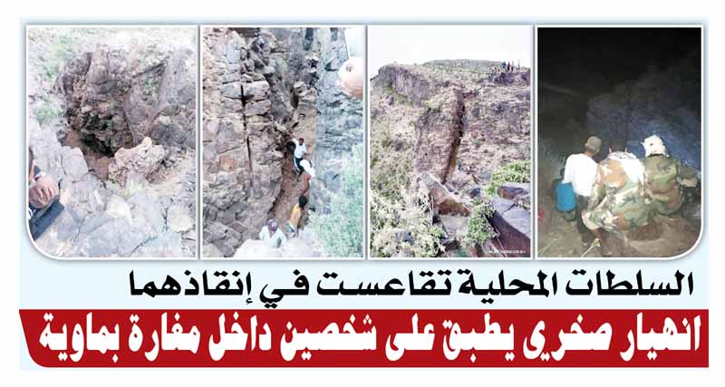 الـمــزيـدأطبق انهيار صخري على اثنين من المواطنين داخل مغارة في أحد جبال مديرية ماوية بتعز، فيما فشلت محاولات . .
