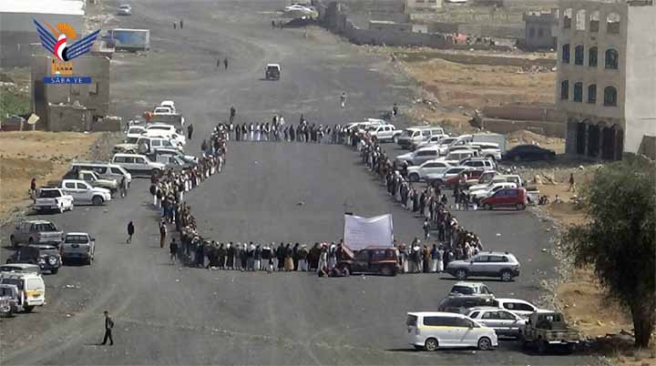 نُظمت بمديريات محافظة صنعاء، اليوم وقفات عقب صلاة الجمعة تنديداً باستمرار إغلاق ميناء الحديدة ومنع د. .
