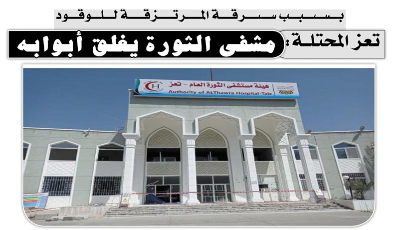 الـمــزيـدأعلنت هيئة مستشفى الثورة العام بتعز المحتلة عن توقف العديد من الأقسام الطبية في المستشفى نتيجة سرقة . .