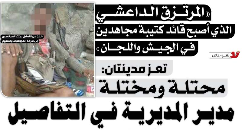 «المرتزق الداعشي الذي أصبح قائد كتيبة مجاهدين في الجيش واللجان».. «تعز» مدينتان:محتلة ومختلة