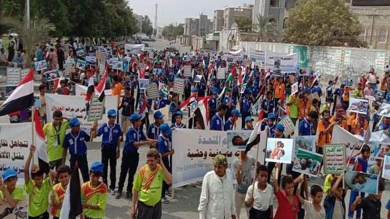 الـمــزيـدنظم أطفال محافظة الحديدة، اليوم الأحد، مسيرة ووقفة أمام مكتب الأمم المتحدة بالمحافظة تنديدا بقرار أم. .