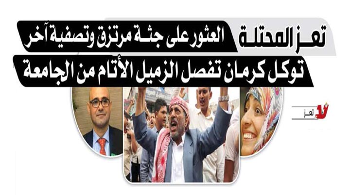 توكل كرمان تفصل الزميل الأتام من الجامعة ... تعز المحتلة:العثور على جثة مرتزق وتصفية آخر