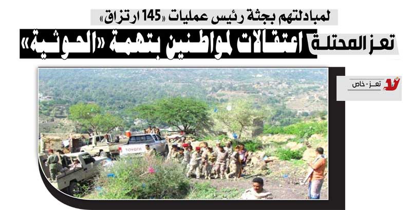 لمبادلتهم بجثة رئيس عمليات «145 ارتزاق» .. تعـز المحتلـة : اعتقـالات لمواطـنين بتهمـة «الحوثية»