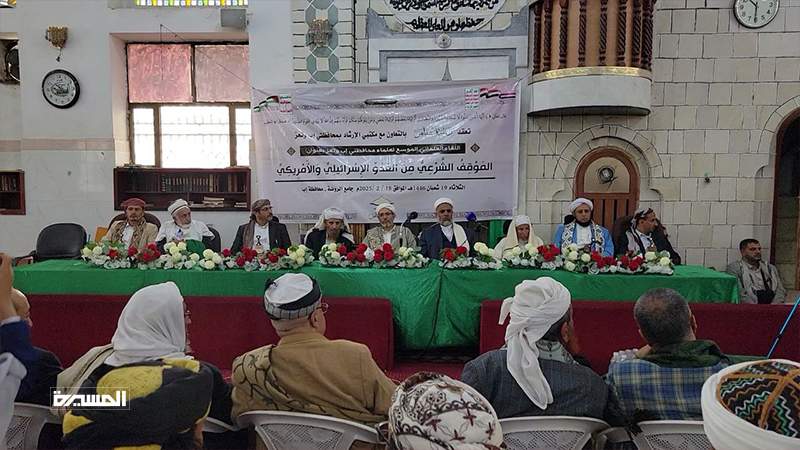 الـمــزيـدأكد علماء محافظتي إب وتعز وجوب معاداة العدو الإسرائيلي والأمريكي وحرمة التطبيع مع الكيان الصهيوني وح. .