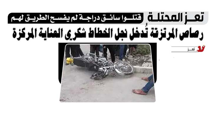 قتلوا سائق دراجة لم يفسح الطريق لهم.. تعز المحتلة : رصاص المرتزقة تُدخل نجل الخطاط شكري العناية المركزة