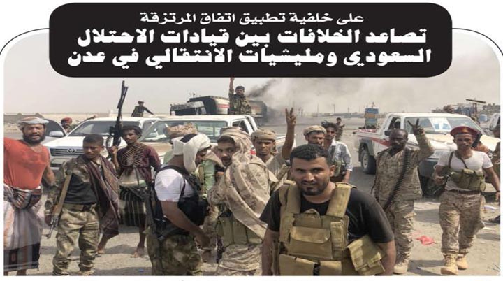 على خلفية تطبيق اتفاق المرتزقة.. تصاعد الخلافات بين قيادات الاحتلال السعودي ومليشيات الانتقالي في عدن