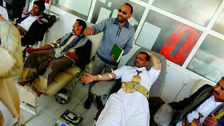 الـمــزيـددشن محافظ صعدة محمد جابر عوض ومعه عدد من المسؤولين اليوم في المستشفى الجمهوري بمدينة صعدة حملة التبر. .