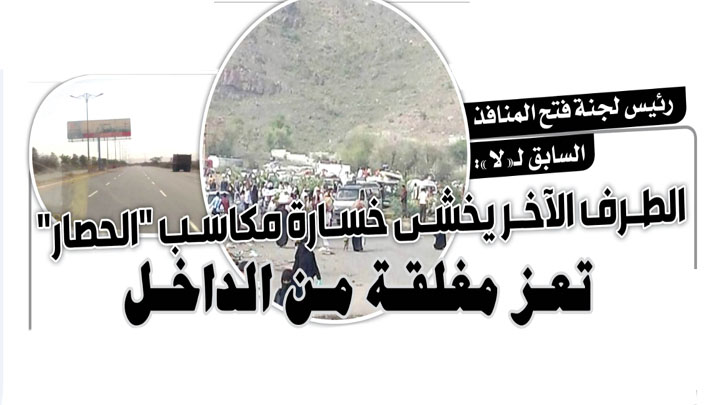 رئيس لجنة فتح المنافذ السابق لـ«لا»: الطرف الآخر يخشى خسارة مكاسـب الحصار«تعز مغلقـة من الداخل»