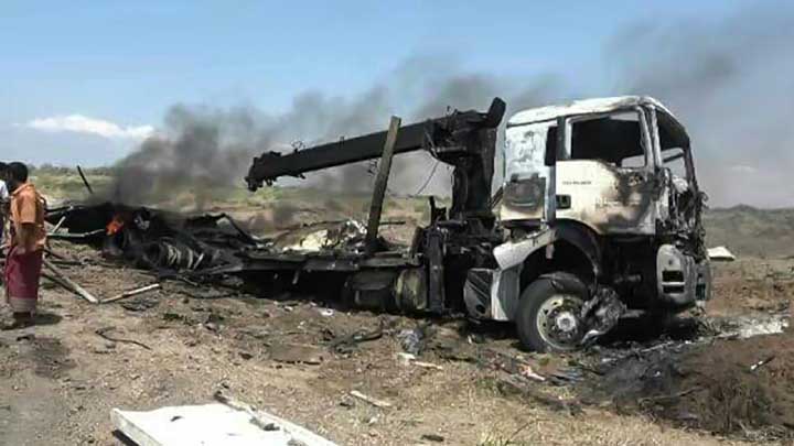 الـمــزيـددمر طيران العدوان السعودي الأمريكي اليوم الأحد شاحنة في منطقة العرج بمديرية الصليف بالحديدة في خرق و. .