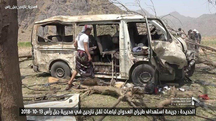 ارتفعت حصيلة جريمة طيران العدوان السعودي الأمريكي اليوم السبت على حافلتين تُقل أسرًا نازحة في الطريق. .